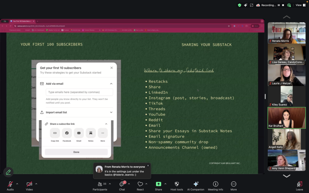 We covered all of that in a live workshop – 90 minutes, fully practical, with real examples and live Q&A where people brought their actual Substacks and we workshopped them together